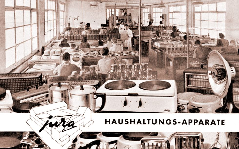 Import restrictions during the war increased demand for Swiss-made products, fueling the company’s steady growth. JURA's workforce grew from 80 employees at the start of the war to around 400 by its end. The gas rationing of the time also heightened demand for electrical hot plates, which JURA produced in large quantities.